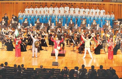10月20日晚,典雅莊重的國家大劇院音樂廳第一次唱響安徽泗州戲婉轉(zhuǎn)抒情的旋律。由安徽省泗州戲劇院、安徽交響樂團(tuán)傾力打造的泗州戲交響清唱劇《摸花轎》隆重上演。